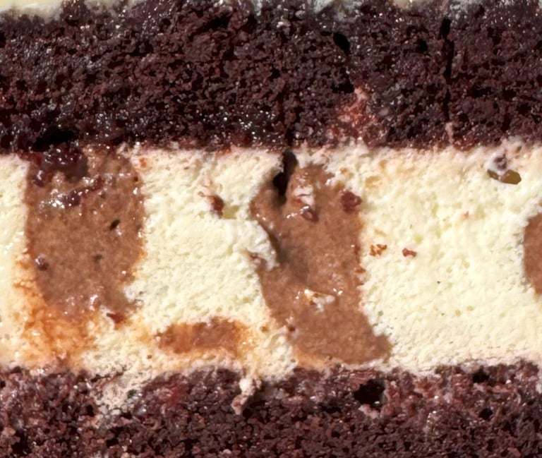 Základ torty tvorí ľahká šifónová čokoládová piškóta, ktorá sa vyznačuje neuveriteľnou vzdušnosťou a intenzívnou čokoládovou chuťou. Krém z Nutelly dodáva torte jedinečnú krémovú textúru a bohatú orieškovú arómu. Ako čerešnička na torte slúži čokoládová chrumkavá vrstva, ktorá vytvára príjemný kontrast a ponúka nezabudnuteľný zážitok v každom súste.