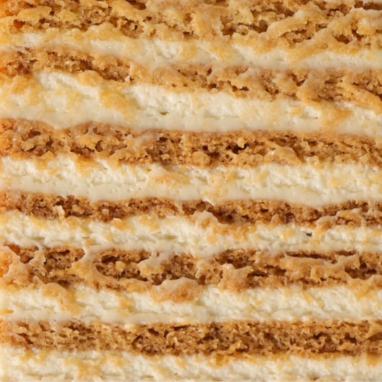 Jasná, bohatá medová chuť piškóty v kombinácii s tradičným kyslosmotanovým krémom, ktorý sme pripravili tak, aby bol len jemne sladký – vďaka tomu krásne vyvažuje celkovú chuť torty.